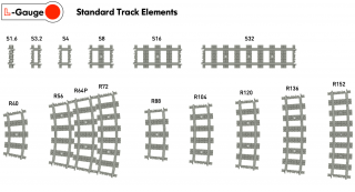 LDraw parts representing generic straight and curve RC plastic track elements (S1.6, S3.2, S4, S8, S16, S32 straight tracks, R40, R56, R64P, R72, R88, R104, R120, R136, R152 curve tracks) Note that these parts are not officially endorsed by LDraw.org. Use at your own risk. Original model assets can be found at the L-Gauge GitHub repository